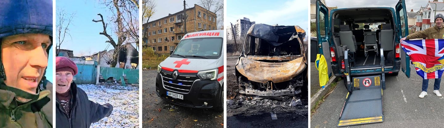 There are many brave Ukrainians, but this is an unusal story about just one we have helped. Since 2014, when Russia invaded and annexed Crimea, this man has been rescuing terrified, infirm, elderly people, left behind in the bombed out communities of front-line towns and villages. His minibus was very clearly marked, but it was deliberately blown up by a Russian drone in February 2025. Team Devon vowed to help him continue his work. A replacement (with rear wheelchair lift) was funded and delivered to him in the front-line city of Zaporizhzhia by Team Devon, just 5 weeks later!
