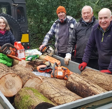 Woodland owners will often donate fallen timber or dieback ash for felling and cutting and splitting, to be sold to locals with open fires or wood burners. Team Devon raise around £12,000 each winter selling logs at £120 per trailer load. It’s also great winter outdoor exercise!