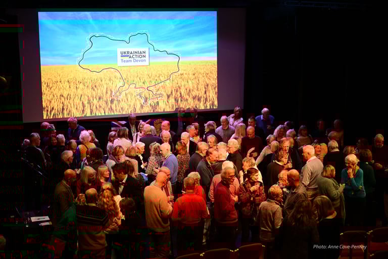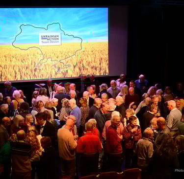 Not one for everyone, but booking the Flavel Theatre in Dartmouth for a Ukraine Fundraising Evening yielded £16,000 last November. On the programme was a retired well known TV host, an Auction of Promises, Ukrainian Wine Talk, Sampling of Ukrainian Wine, Canapes, the Singers from Ukrainian Space in Plymouth and a moving presentation by two founding members of UA Team Devon.