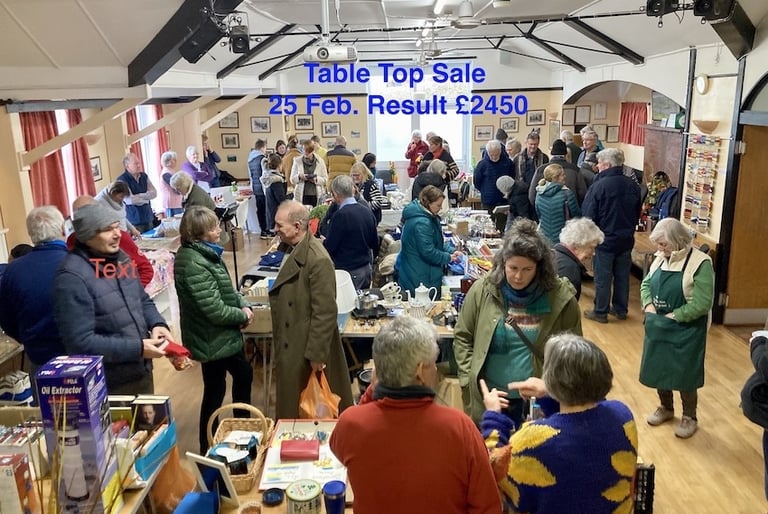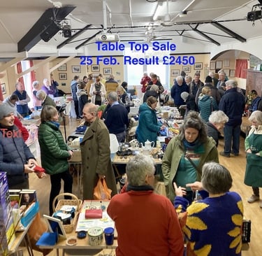 In a village hall, town hall of community centre, Table Top Sales have generated good funds for UA Team Devon.