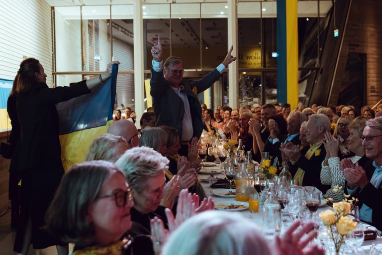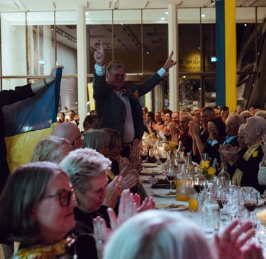 Do you know someone with a barn or large party room? Or use a sports hall or school assembly room. This is a fun way to entertain friends and contacts or involve the whole community. Serve Ukrainian Food, Ukrainian Wine, hold an Auction of Promises, have Ukrainian music and a fundraising appeal.