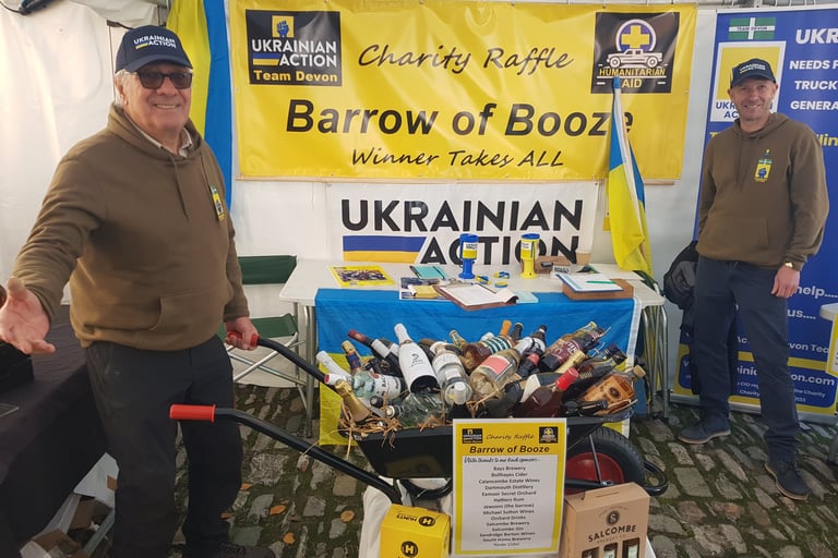 For the last two years, UA Team Devon have had a stall at Dartmouth Food Festival and raffled a Barrow of Booze – Winner Takes All! Each time this has raised our profile and generated enough funds to buy a truck for the next convoy to Ukraine.