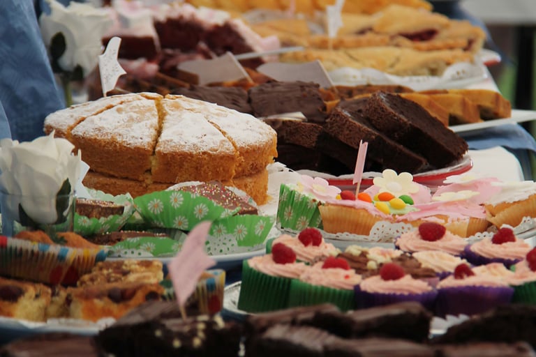 Cake Sale: Satisfy sweet cravings post-lunch with cakes for donations.